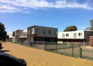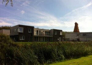 Ontwerp van een wooncomplex aan de Annie Romein Verschoorlaan te Den Helder. Het complex bevat twintig wooneenheden voor jeugdhulp, leefkeukens en kantoren welke zijn onderverdeeld in drie gebouwen. De gebouwen zijn gekleed met donker metselwerk en een houten gevelbekleding, de hoeken van de gebouwen zijn geaccentueerd met uitkragende kozijnen.